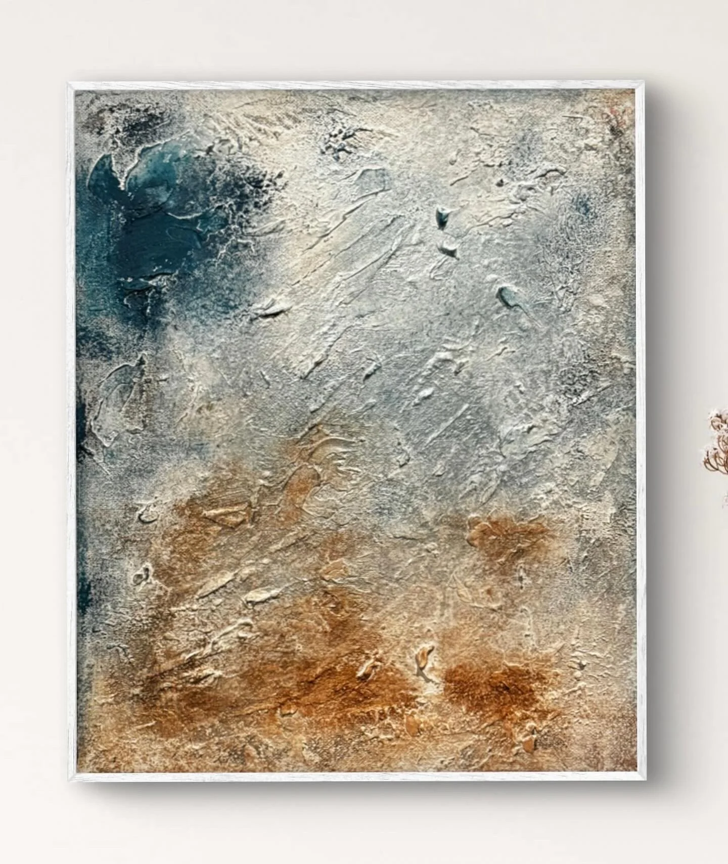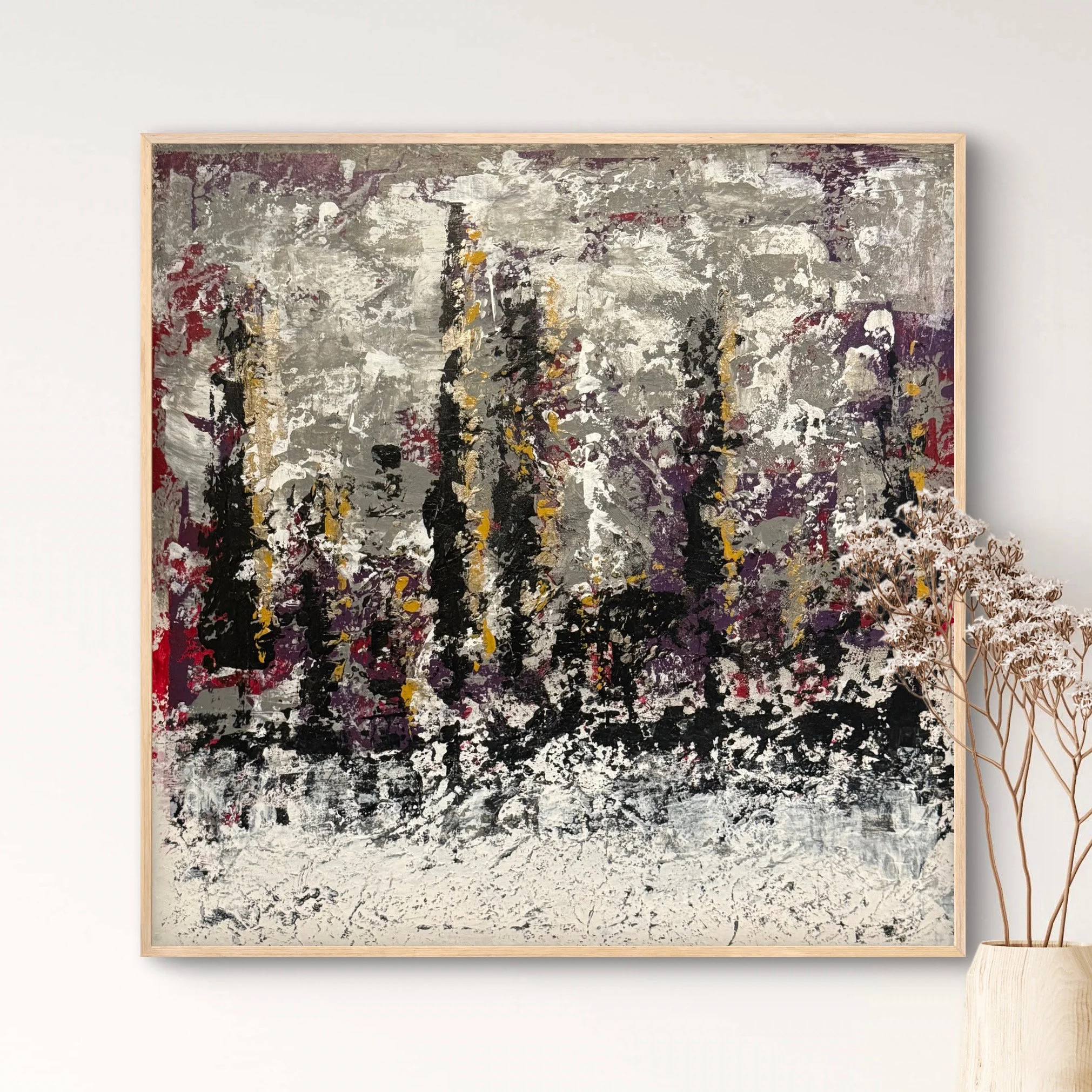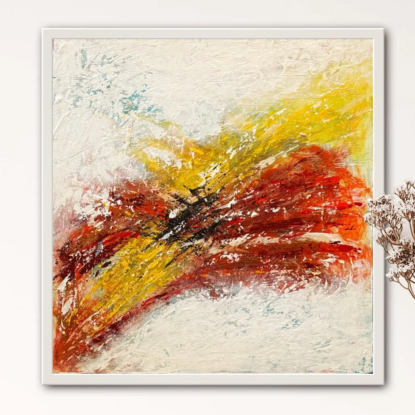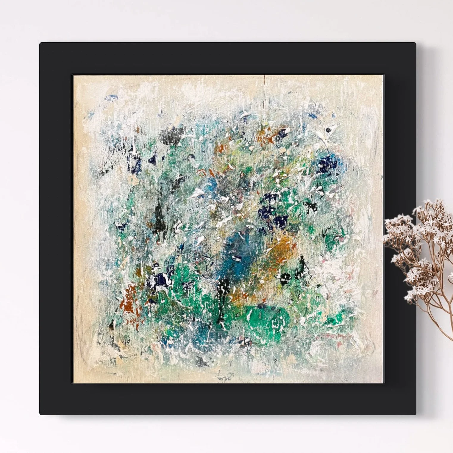 Bend & Break - acrylic and paste on canvas in crafted frame 20x20