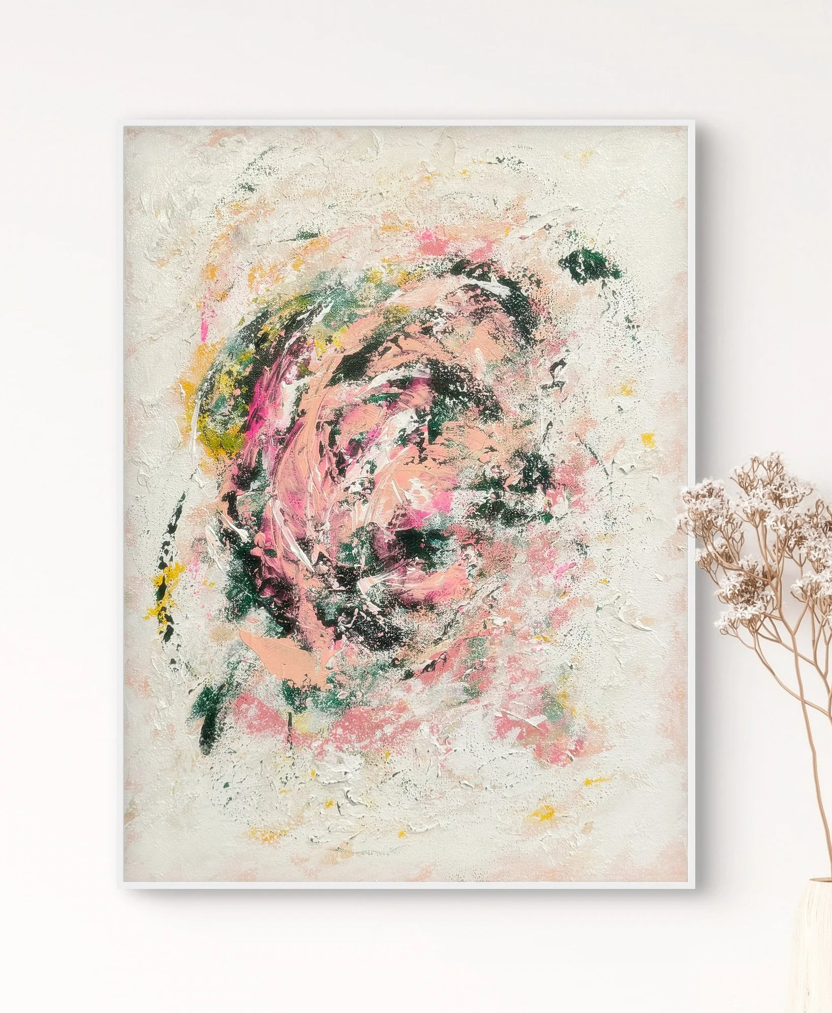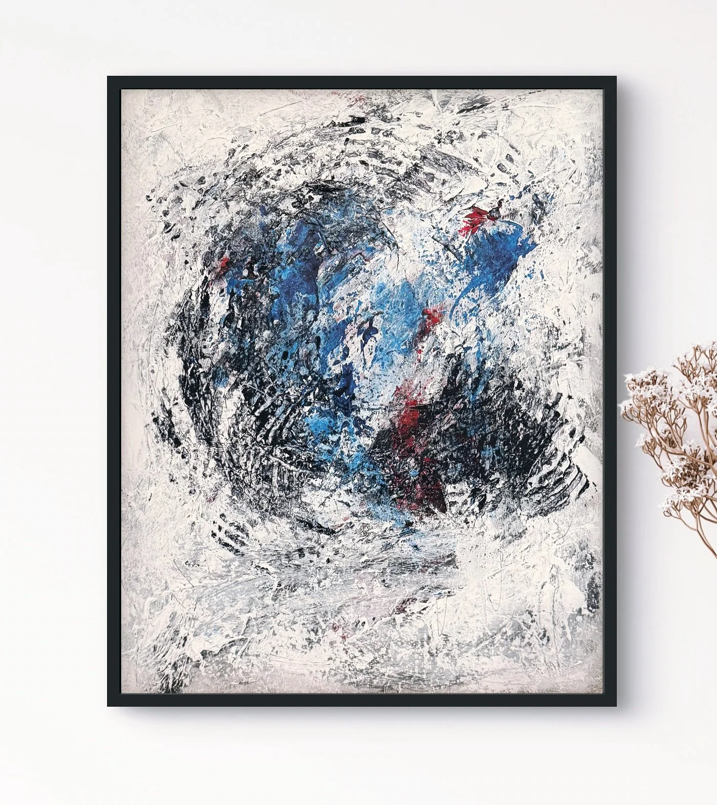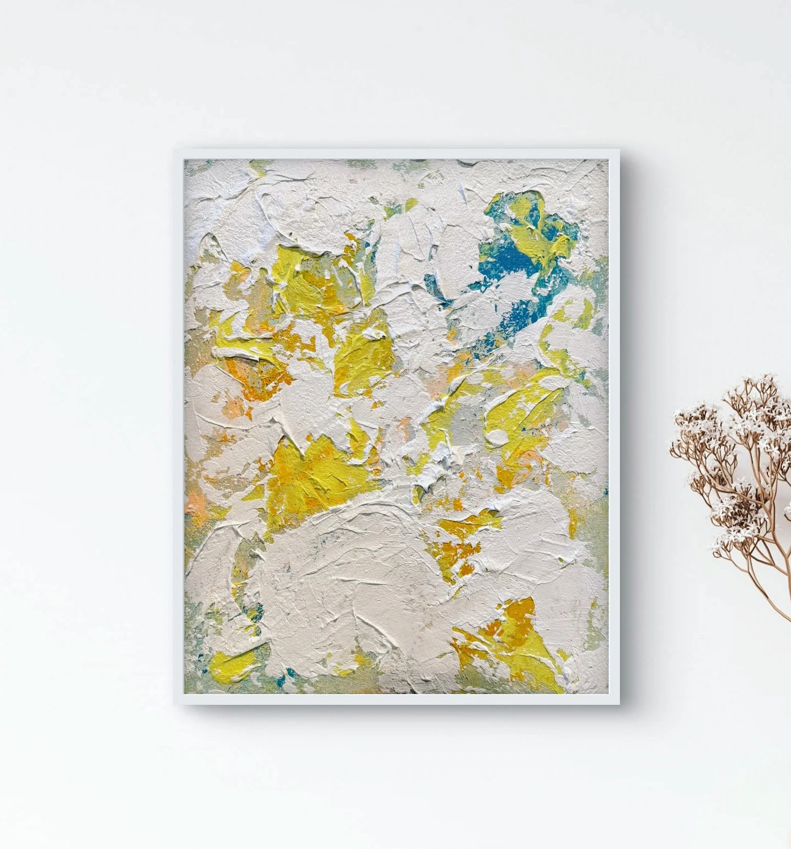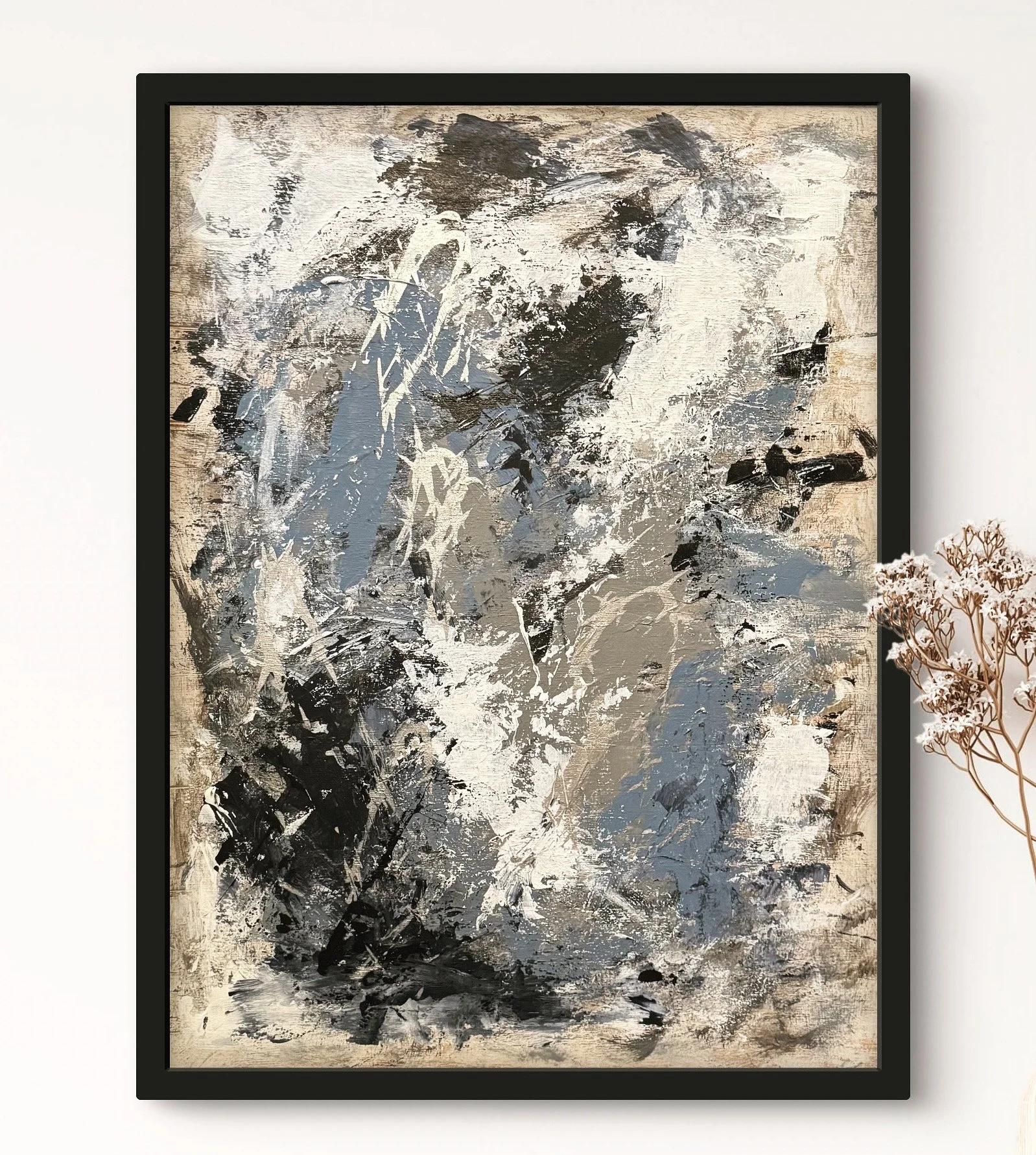 Bend & Break - acrylic and paste on canvas in crafted frame 20x20