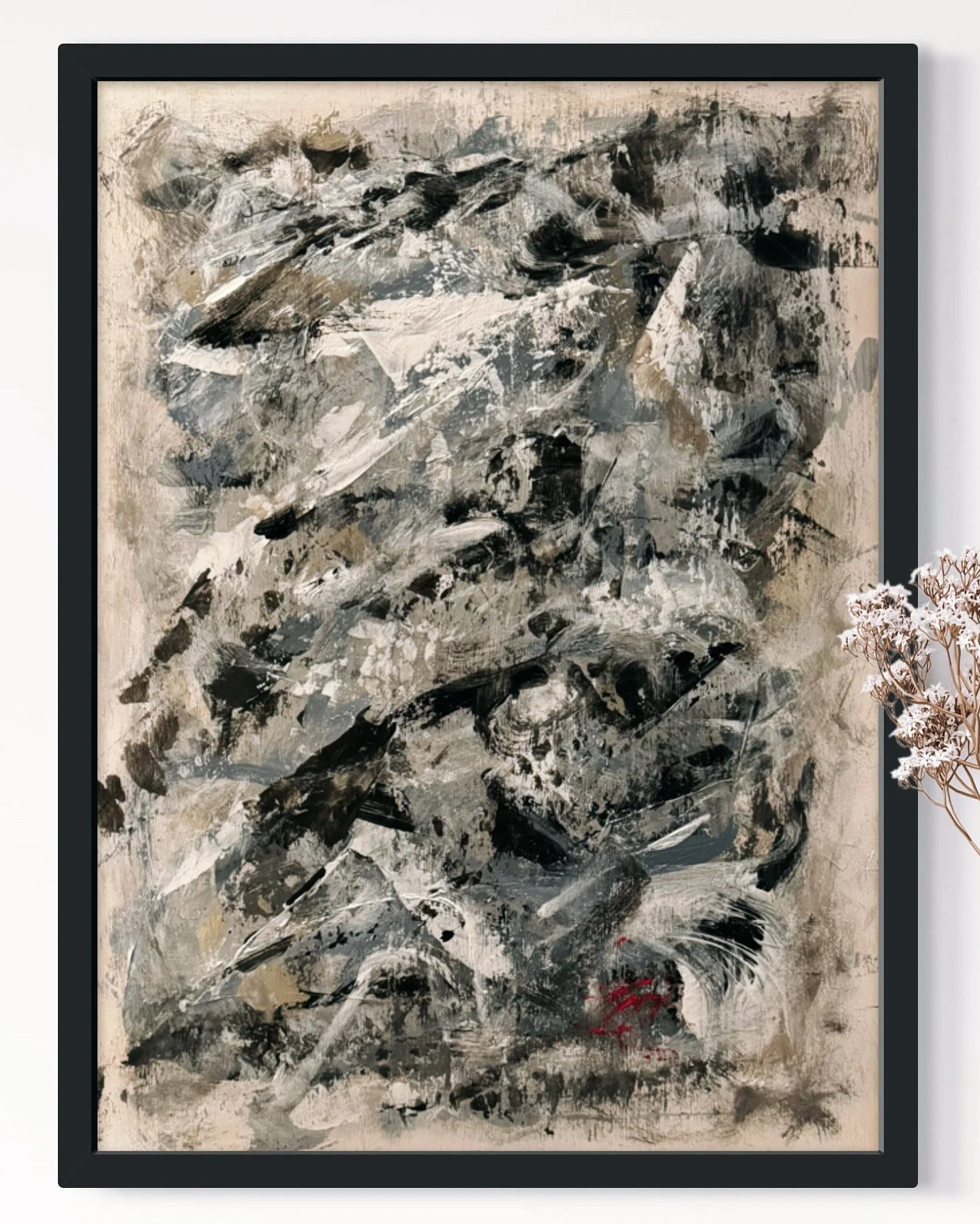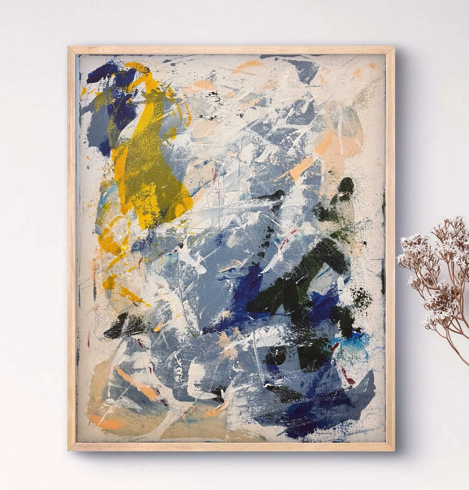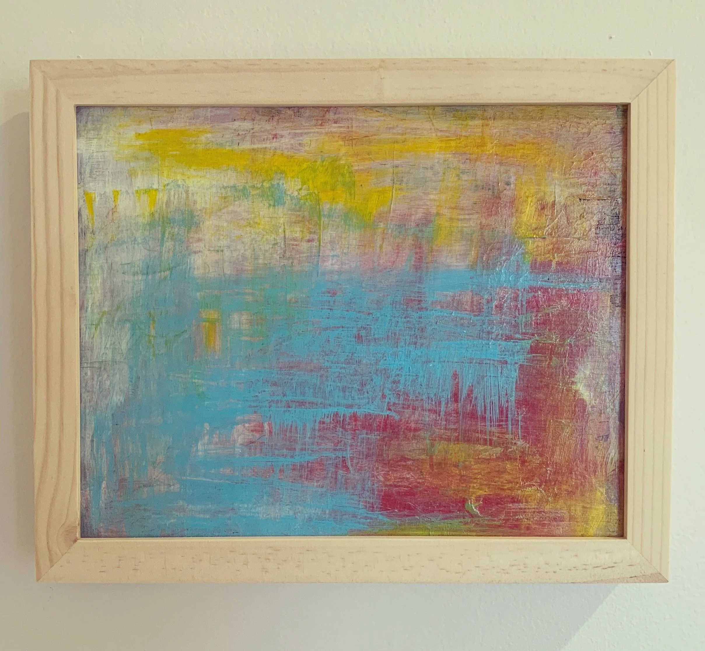 Untitled on Vinyl - acrylic on canvas in found frame 24x36
