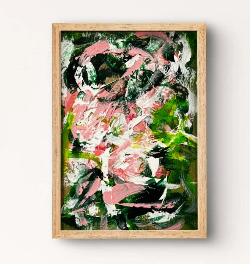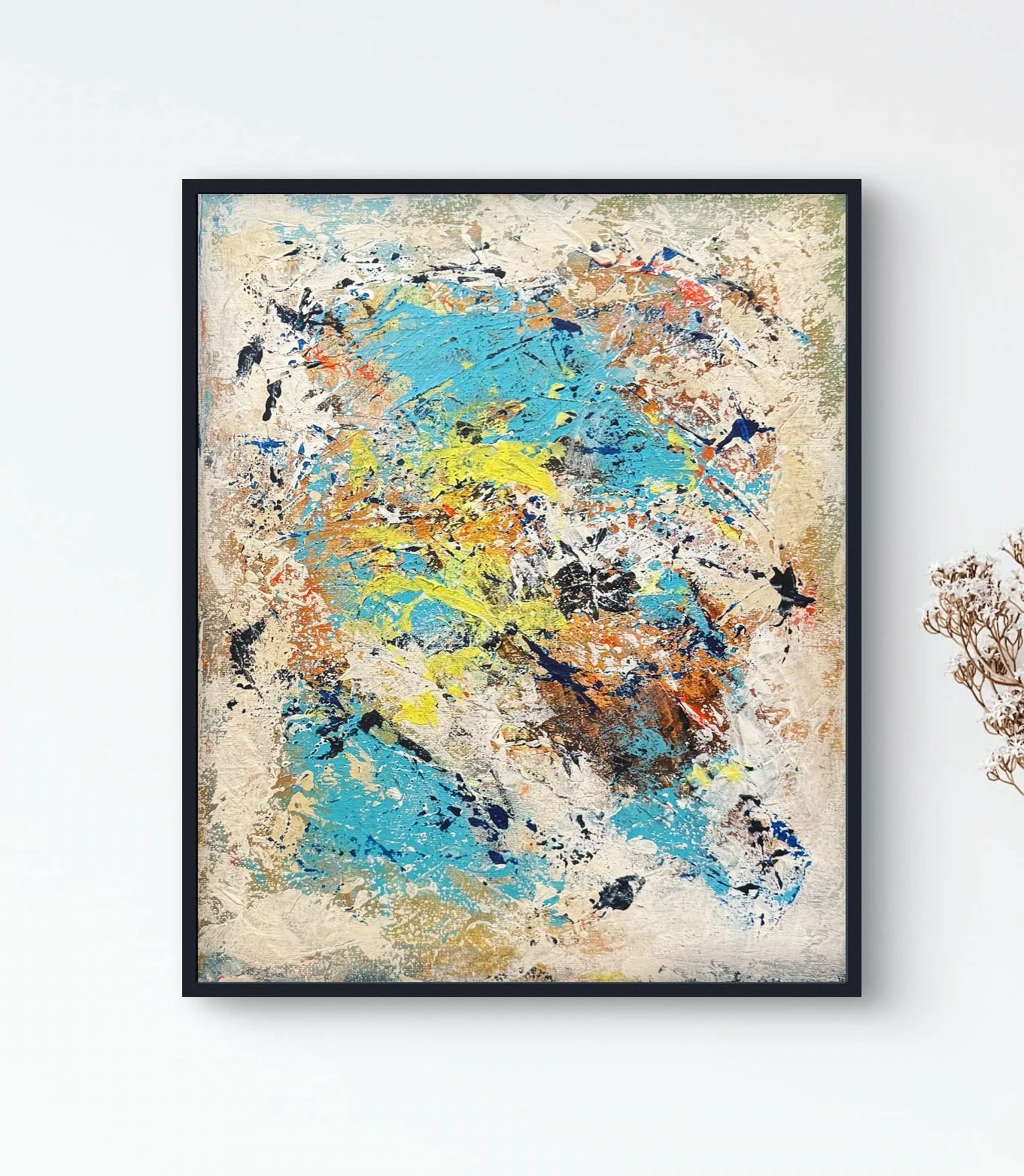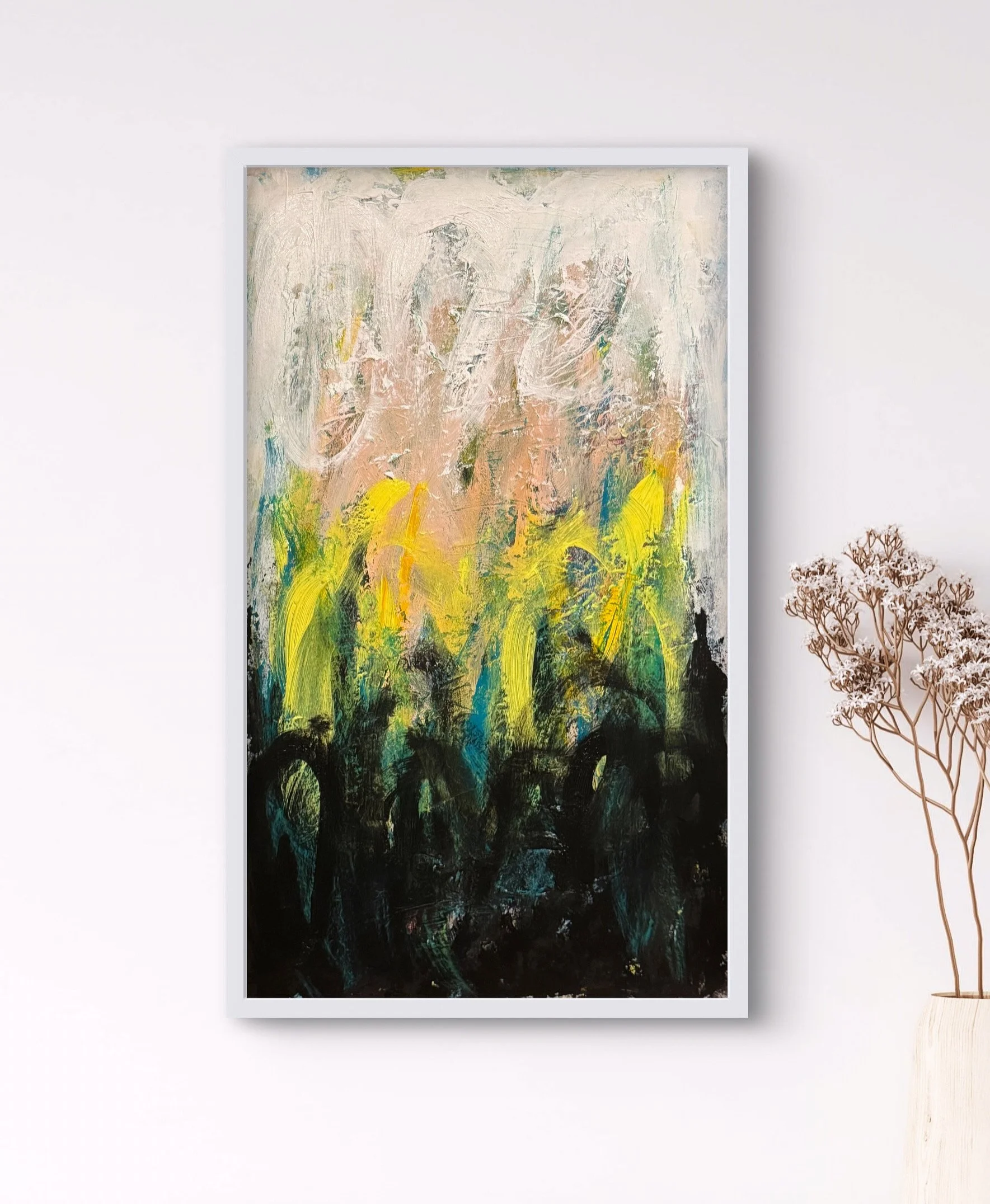 Untitled on Vinyl - acrylic on canvas in found frame 24x36